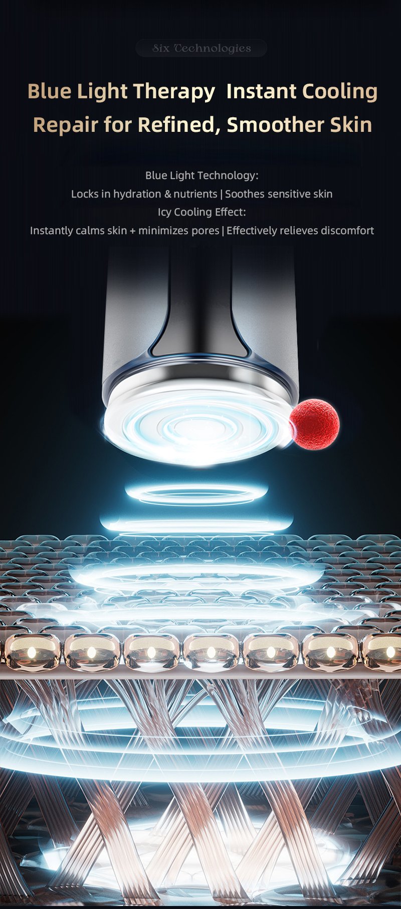 - Frequency Conversion Radio Frequency Technology: Dynamic frequency conversion radio frequency can quickly activate collagen in the dermis, smooth wrinkles, and make the skin full. In addition, it is equipped with an intelligent thermostatic system to accelerate the absorption of essence and skin microcirculation.